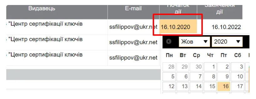 Дата початку дії сертифікату автоматично співпадає з датою створення заявки, але ви можете редагувати її за потреби.