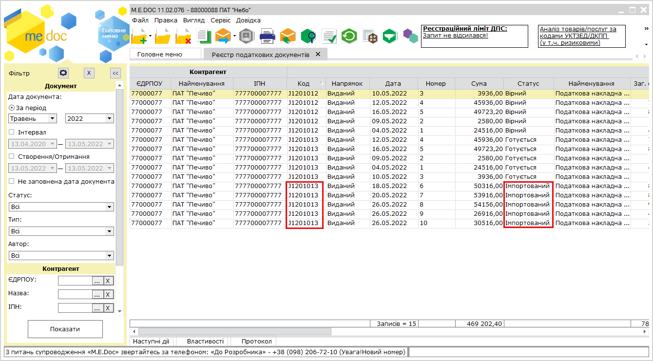 - Якщо ваша облікова система формує ПН та РК старої форми, то під час імпорту таких документів до програми M.E.Doc, вони будуть автоматично конвертуватись в оновлену версію. Щоб імпортувати податкові накладні або розрахунки коригування до програми, виконайте наступні дії: